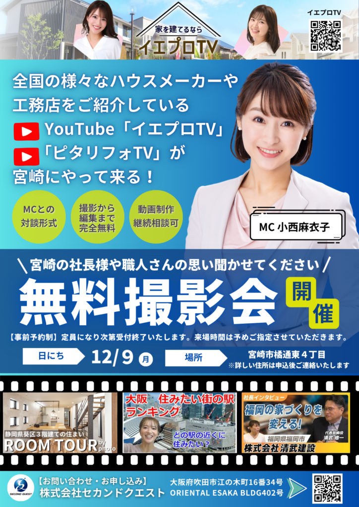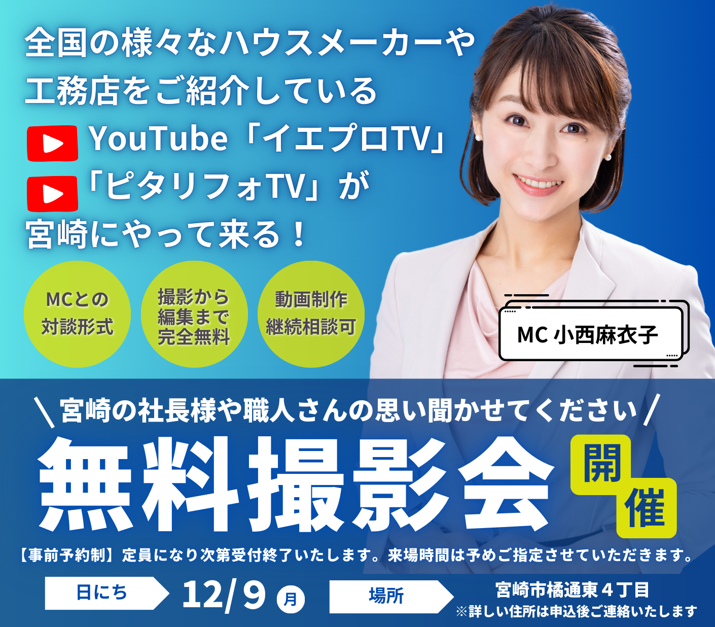 12月9日(月) Youtube動画 無料撮影会 in宮崎