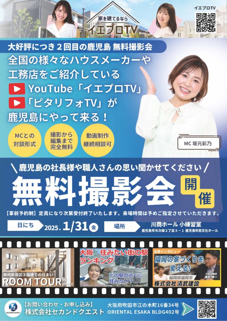 1月31日(金)【大好評につき第2弾!】 Youtube動画 無料撮影会 in鹿児島