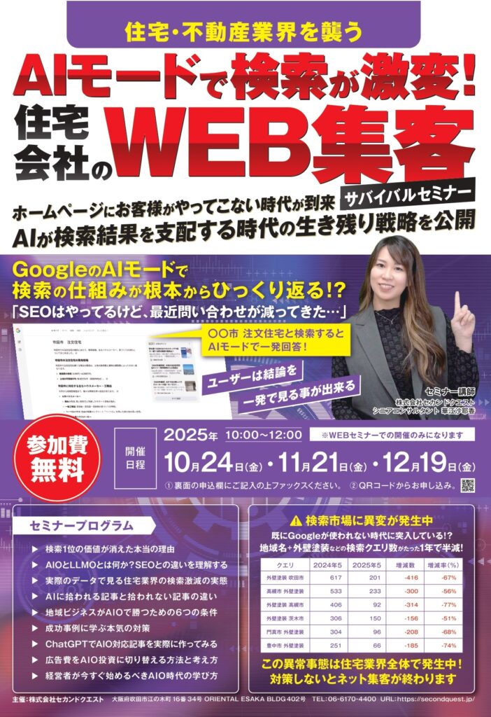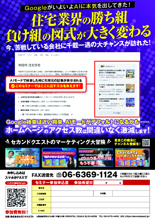 📌生成AIが検索結果を変えた!住宅業界を襲うAIO(SGE)の衝撃とその対策を全公開セミナー